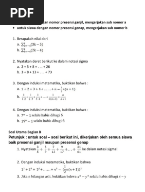 Smarrt plus dan online class duration. Posted in rumus matematika tagged 41n 14n adalah kelipatan 27 7n 2n habis dibagi 5 8n3 5n habis dibagi 3 a n b n habis dibagi ab buktikan n2n contoh soal induksi matematika brainly contoh soal induksi matematika notasi sigma contoh soal induksi matematika pertidaksamaan contoh soal ketidaksamaan induksi matematika diketahui sn. Notasi sigma dan induksi matematika soal mat 11 fitur baru.