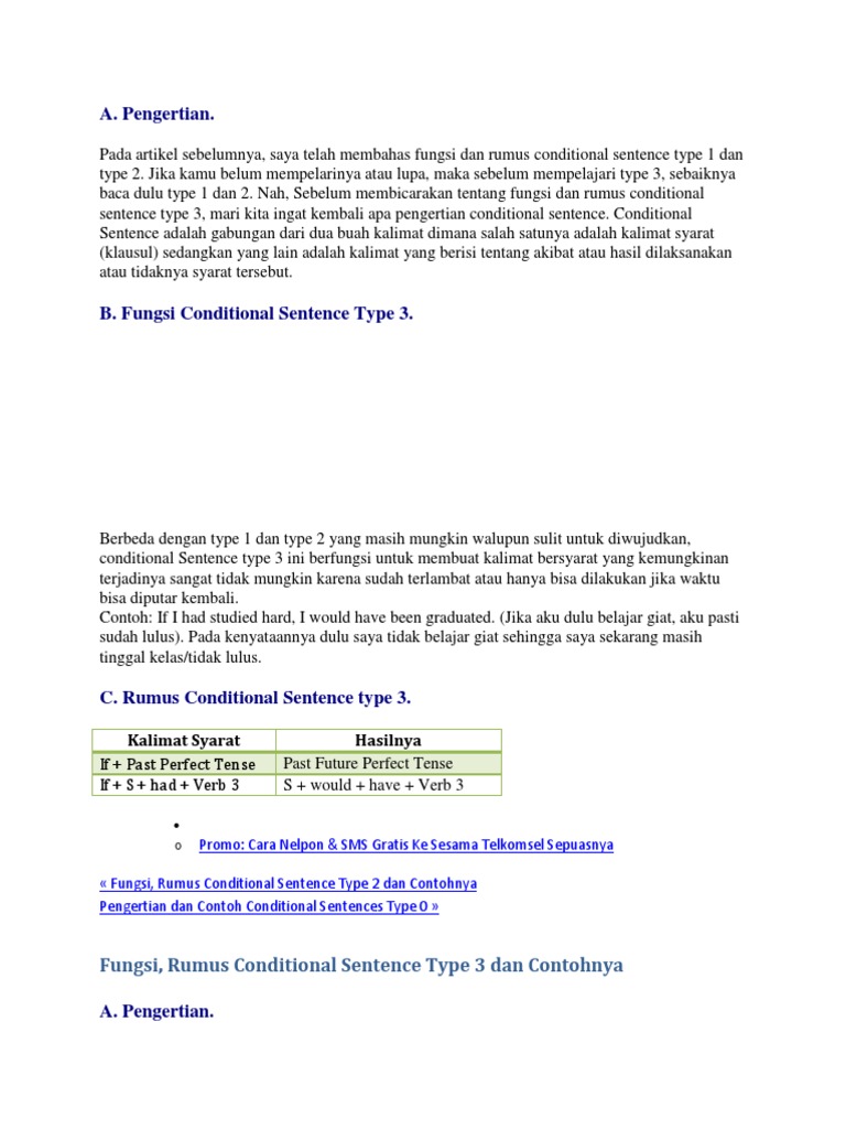 Contoh soal conditional sentence type 1 2 3 ini sudah kami lengkapi dengan jawaban dan pembahasan soal yang dapat membantu anda dalam menjawab berbagai pertanyaan tentang conditional sentence yang telah disediakan. Contoh soal conditional sentence type 1 2 3 dan jawabannya.